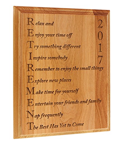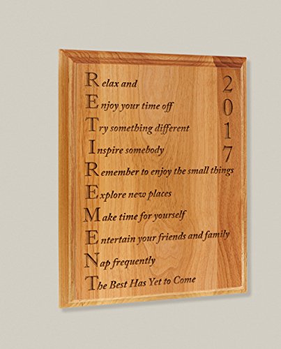 Binding : Kitchen Product Description Retirement plaques make great retirement gifts for women or retirement gifts for men. This funny retirement gift is sure to be cherished. Plaques are great retirement gifts for Dad or retirement gifts for Mom, retirement gits for coworkers, retirement gifts for teachers, and more. This beautifully engraved plaque makes a stunning gift for any occasion. This wooden plaque features handsome curved beveled edges and two routed slots for easy hanging. This plaque is designed and engraved in the USA. Engraved plaques never fade, and make great housewarming gifts, retirement gifts, Mother's Day gifts and Father's Day gifts, or birthday gifts. A plaque makes for cute kitchen decor and stunning home office decor. Each plaque is made from real wood, and will have its own unique coloration and wood grain pattern. Therefore, product may vary slightly in appearance from image shown. 0