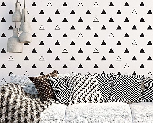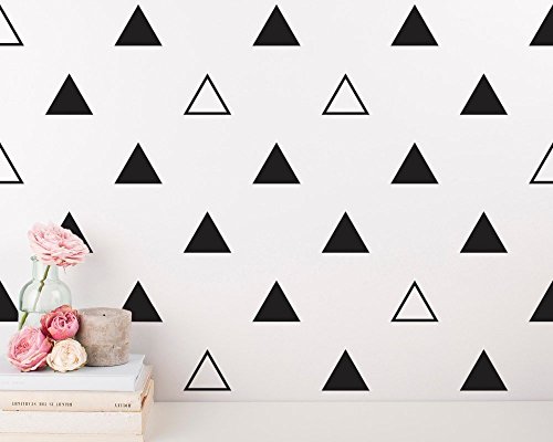 64pcs/set Modern Vinyl Triangles Wall Decal Solid /Outline triangles Pattern Wall sticker DIY Home Decor Kids/ Children Room Decor Stickers YYU-18 (Black)