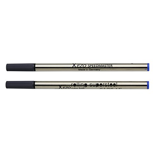 - 2 Xezo Speedmaster roller ball pen refills. Blue. German-made. Fine point. Writing point is 0.5-0.6 mm