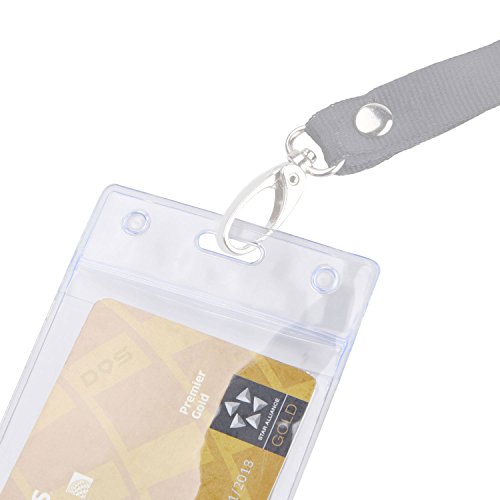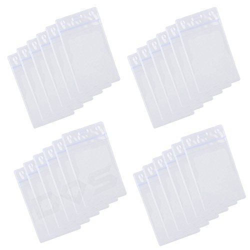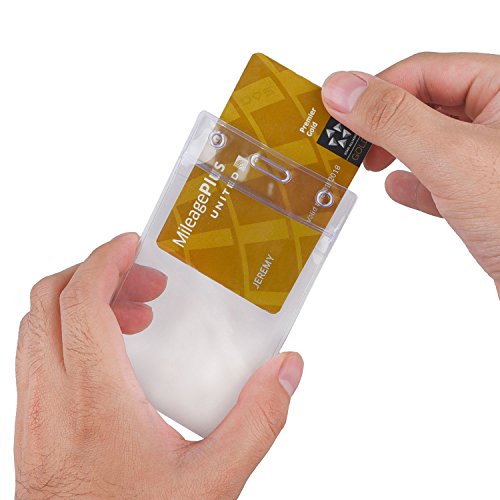 Badge Holder, 24 Pack, Vertical - Clear Transparent - Reversible, Flexible, Strong - for ID Card, Credit card, Business Card, Driver License, etc. - Holes for Clip, Chain