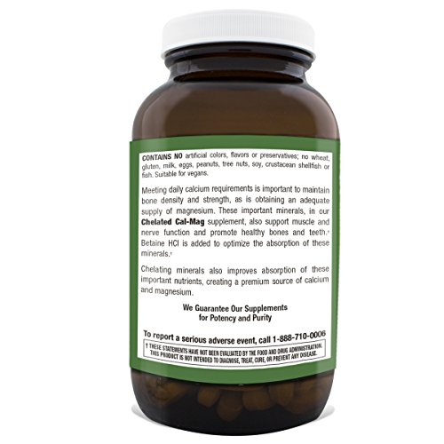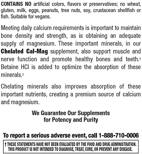 Natural, vegan, vegetarian, gluten free, and soy free complex contains 1500 mg of Calcium and Magnesium.