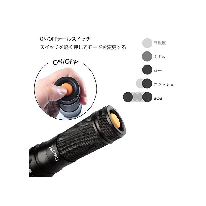 ◆【5모드】뒤에 붙는 스위치는 전원이고, 모드의 교환 버튼이기도 하다,강하게 누르면 ON/OFF가,가볍게 누른 #과 하이⇒미들⇒로우⇒플래쉬⇒SOS까지 변환,각종의 장면에 대응에서 옵니다!