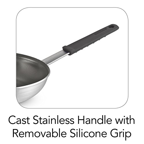 Tramontina's Professional Fusion Fry Pan features the new Fusion Rivet System which provides a rivet-less, smooth interior cooking surface. This clever and exclusive system provides easy cooking and effortless cleanup, while maintaining all the strength and durability of a traditional riveted handle assembly. The rivet-less cooking surface, combined with the advanced PFOA free nonstick, provides high performance and excellent food release. The Professional cookware collection from Tramontina is designed to stand up to the rigors of restaurant kitchens—and offers an excellent value for home cooks. Ideal for frying, scrambling, sautéing and searing your favorite recipes, the fry pan is constructed of commercial-grade; heavy-gauge aluminum distributing heat quickly and evenly, while the reinforced nonstick interior allows food to easily release from the pan for effortless cooking and cleanup. The cast stainless steel handle adds support and features a removable, silicone, soft-grip for maneuverability. Part of the TRAMONTINA PROFESSIONAL collection, which features items designed and crafted to optimize performance in both commercial and gourmet kitchen; design, material, finishes and fixtures are carefully selected to provide exceptional durability to match the expectations of professional chefs.Feature