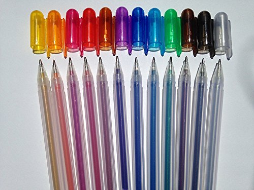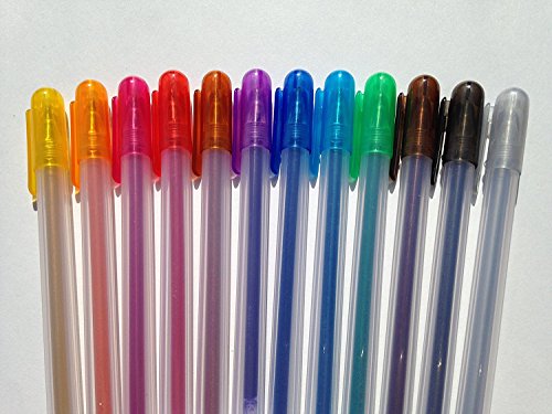 12-Color Glitter Gel Pen Set - Premium Quality for Adult Coloring Books, Kids Coloring, Doodles, Writing, Scrapbooks, Mixed Media Artists & More! Learn to Make 24 Additional Colors Bonus!