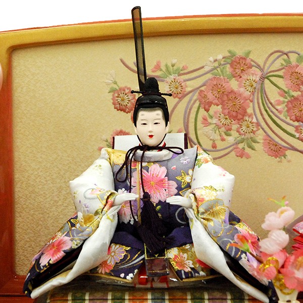 ・台座・屏風等には落ち着いた色目の雛人形セット。