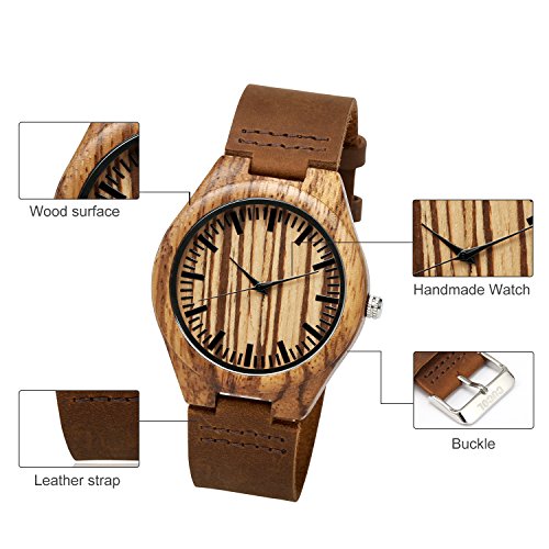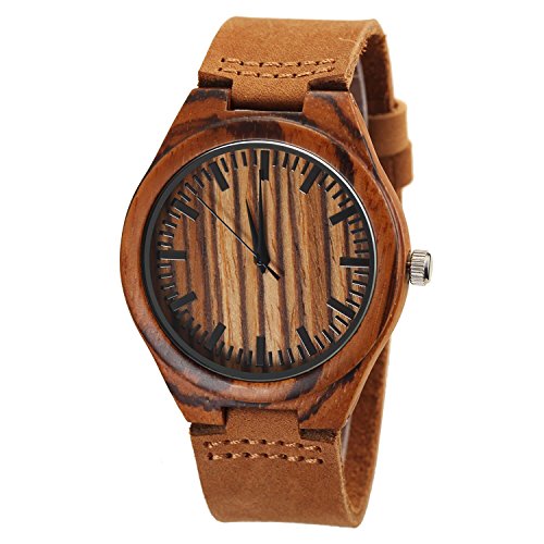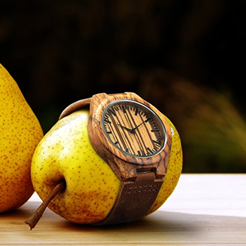 Real Wood Face: The round face of the watch is made out of real wood and covered with glass.