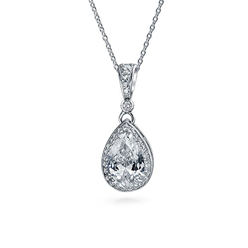 -. Title : Bling Jewelry 925 Sterling Silver Pear CZ Drop Pendant Bridal Necklace 16in