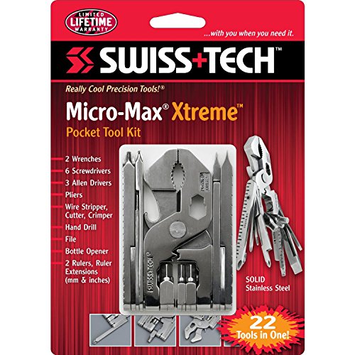 Swiss+Tech ST53130M2 Pocket Multitool Kits (22-in-1) with Wrenches, Allen Drivers, Hand Drill and more - 2 Pack, Polished Stainless Steel