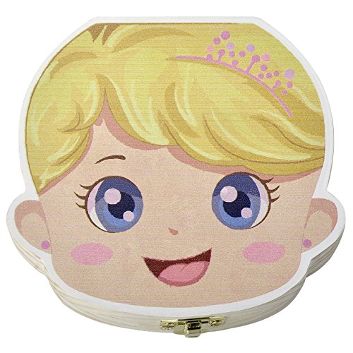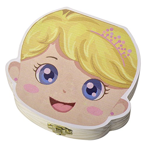 Mogoko Baby Teeth Box, Milk Teeth Wood Case Storage Keepsake Organizer Deciduous Souvenir (English, Princess)