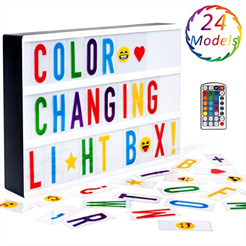 Color Changing Light Box with 100 Letters and Remote Control, LED Cinematic Light Box A4 Size with USB Cable