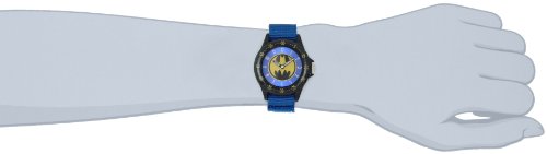 Round watch featuring batman logo, labeled hour/minute hands, and numbered bezel