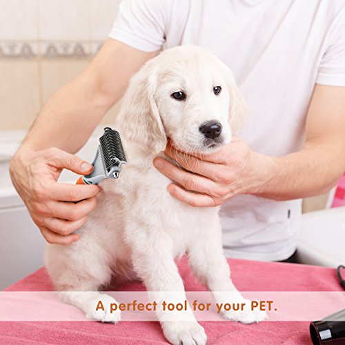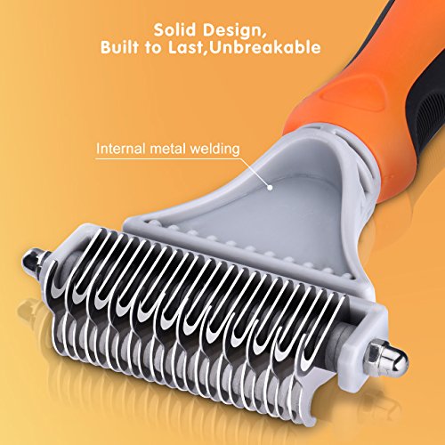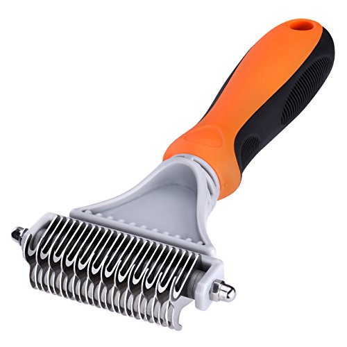 Pictek Dematting Comb / Rake with Stainless Steel Safe Double Sided Blades. Veterinary Approved, Results in Seconds!