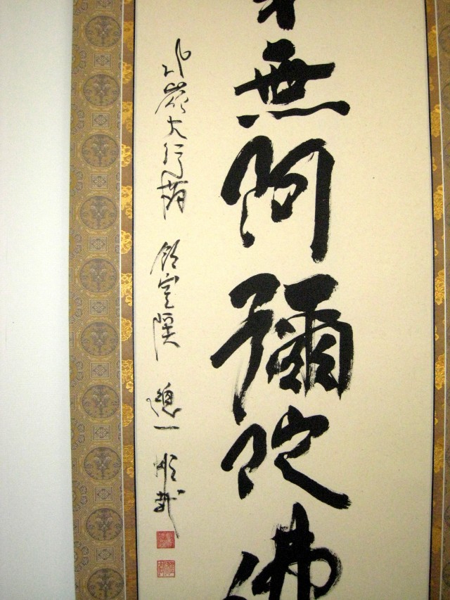 | ■画 題■ 「掛け軸 六字名号」・比叡山北嶺大行満大阿闍梨 酒井雄哉 ■寸 法■ (約)幅 64.5cm× 長さ 194cm ■表 装■ 正絹二丁上織緞子仕立蜀甲柄 ■略 歴■酒井雄哉(さかいゆうさい) 比叡山北嶺大行満大阿闍梨 大正15年9月大阪市玉造に生れる。 昭和40年小林隆彰師により39歳で得度。その後の行の師である飯室谷長寿院の箱崎文応師に就き、三年間の籠山行後… 昭和49年無動谷宝珠院住職を拝命。 昭和50年4月千日回峰に入行。 昭和55年10月満行。わずか5ヶ月後… 昭和56年3月2度目の千日回峰に入行。 昭和62年二千日回峰行を満行(記録が残る天正13年以後4百年間にわずか3人 戦後初)。 ■仕 様■ 太巻 高級仕様 ■代 金■ ¥567,000(定価) ⇒ オンライン特別価格 20%OFF¥453,600(税込) 六字名号、南無阿弥陀仏の掛け軸は、浄土真宗・浄土宗の宗派のご家庭にぜひ一幅お勧めしたい掛け軸です。