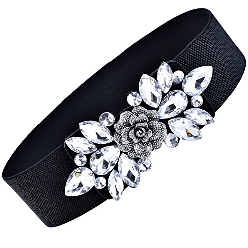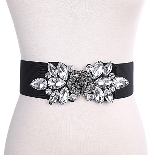 E-Clover Fashion Floral Rhinestone Buckle Elastic Waist Cinch Belt for Dress--as a perfect decoration for your outfit and it would be fashion to wear for any occasion and would help liven up your outfit.