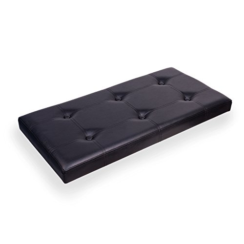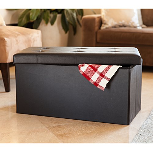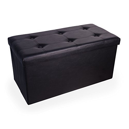-. Brand : Danya B -. Color : Black -. EAN : 0812743020418 -. Feature : Dimensions: 15 inches high x 30 inches wide x 14.5 inches deep / Made of durable and easy to clean synthetic black leather / 15 inch high button cushion seat can support up to 300 lbs / Can fold to only 3 inches height in seconds for storage. Unfolds to provide immediate seating for 2 people and storage options -. Label : Danya B. -. Manufacturer : Danya B. -. Model : WX7638BK -. MPN : WX7638BK -. PackageQuantity : 1 -. PartNumber : WX7638BK -. ProductGroup : Furniture -. ProductTypeName : HOME_FURNITURE_AND_DECOR -. Publisher : Danya B. -. Studio : Danya B. -. Title : Danya B Folding Storage Bench with Buttons -Black Faux Leather -. UPC : 812743020418