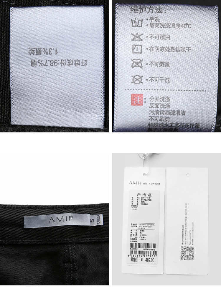 | 洗涤标准: | 不可漂白不可干洗不可刷洗悬挂晾干40℃以下手洗不可熨烫 |