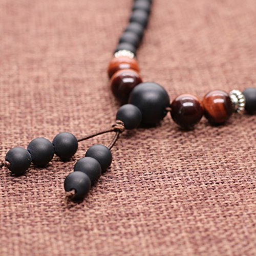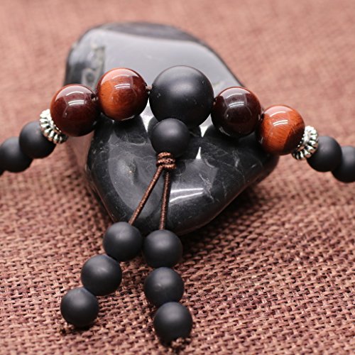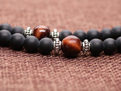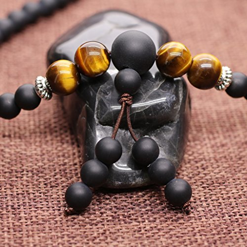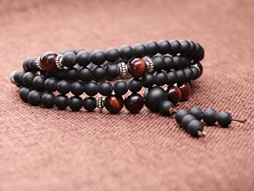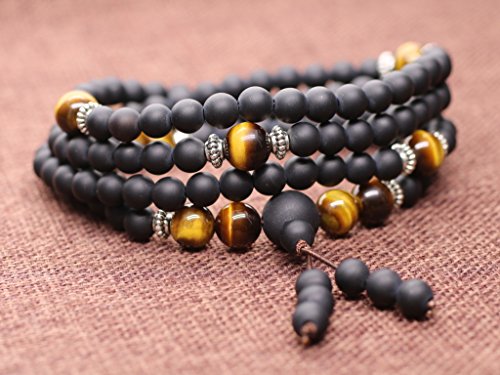 -. Feature : Material: 6mm Prayer Onyx Beads(108pcs)--8mm Divider Brown Tiger Eye Beads(11pcs)--10mm Onyx Guru Bead (1pcs)--6mm Hanging Tassel Beads / Chain: High quality elastic nylon string; About 31.5" in circumference, 4 layers for wrist size of 5.5" to 6.25" / Onyx banishes grief, enhances self-control and stimulates the power of wise decision-making; Tiger Eye assists in accomplishing goals, recognizing inner resources and promoting clarity of intention; Tiger Eye assists in accomplishing goals, recognizing inner resources and promoting clarity of intention / In Tibetan Buddhism, traditionally 108 mala beads are used. Mala beads are used for keeping count while reciting, chanting, or mentally repeating a mantra or the name or names of a deity / Come with beautiful gift box; SHOP SAFELY: Rest assured that you receive the highest quality product; 100% Money Back Guarantee; If you are not completely satisfied with our jewelry, simply return it with full refund