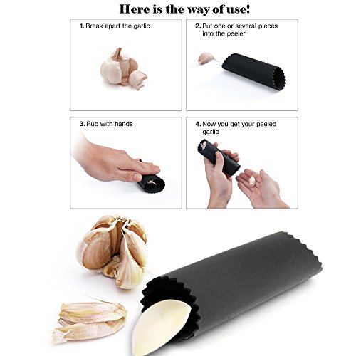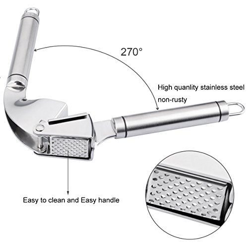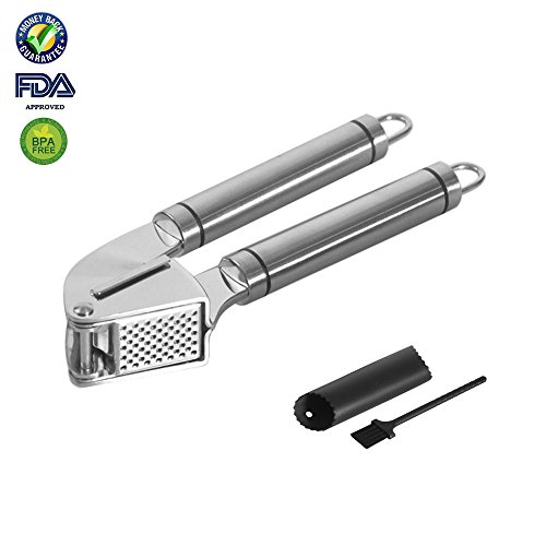 Garlic Press and Silicone Garlic Peeler. Heavy duty Ginger Presser Stainless Steel Mincer and Silicone Tube Roller Peeler set press silicon garlic