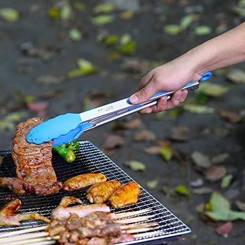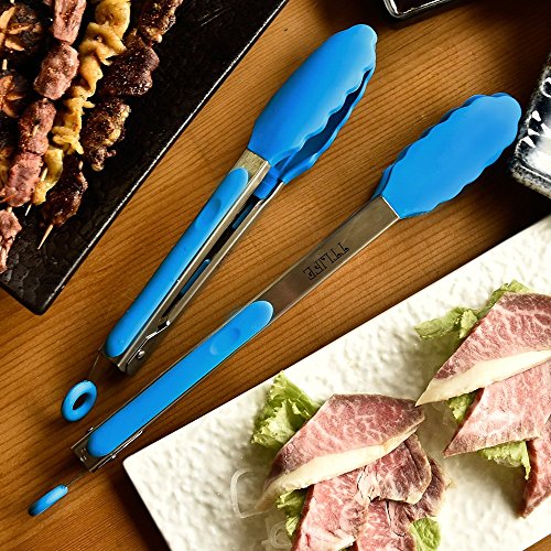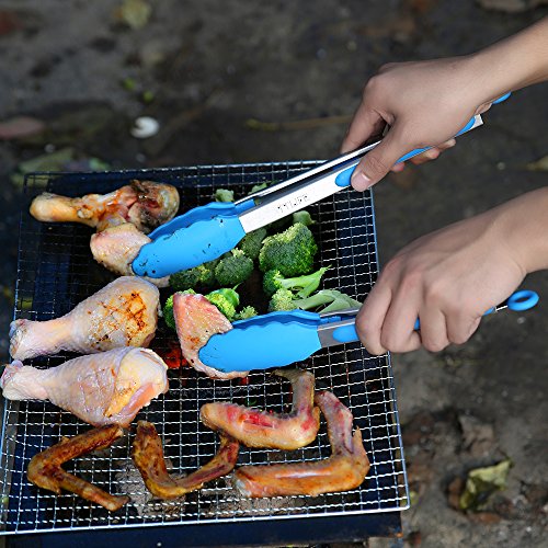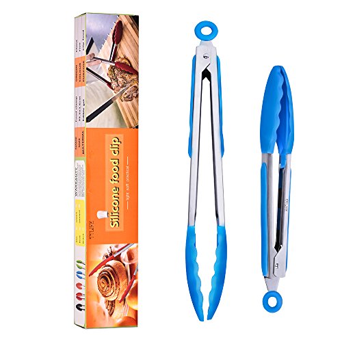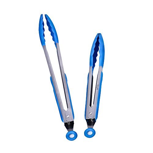 TTLIFE BBQ Tong Sets Grill Tongs Stainless Steel Silicone Kitchen Tongs 2 Pack (9-Inch & 12-Inch) 9"&12" (Blue)
