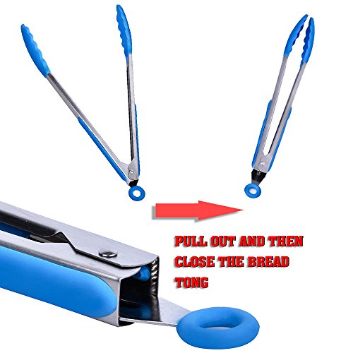 - You'll love using this silicone tongs because it's durable and easy to hold, there's nothing to fall apart, and it's easy to clean.5 Bright Colored Black,Red, Blue, Orange, Green.Good food cooking Set.