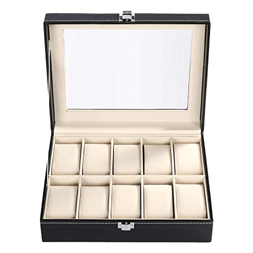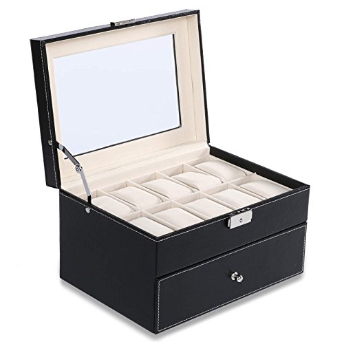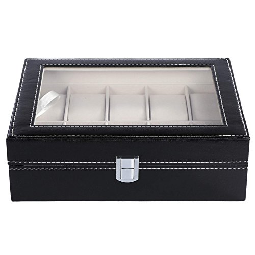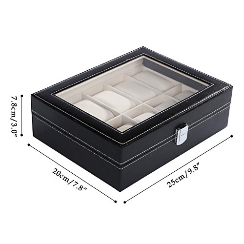 -. Title : Homdox Glass Top Watch Case Display Storage Box Chest Holds Watches