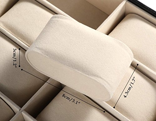 -. Feature : Brand: HOMDOX / Material: Synthetic Leather and Glass / Lining Material: Suede / Color:Black / Package Content:1xWatch Display Case,Removable Pillows,1xKey