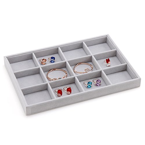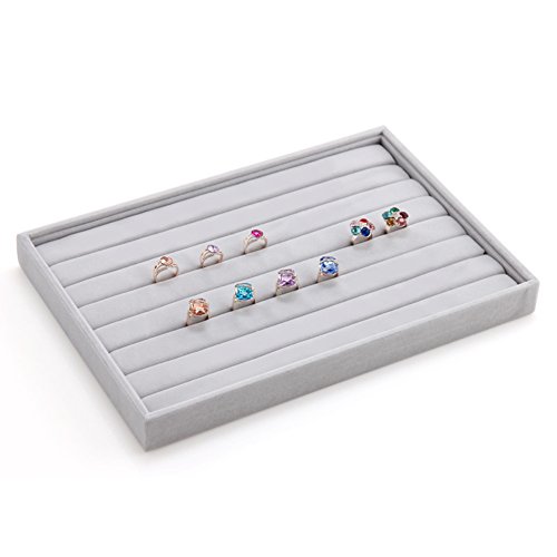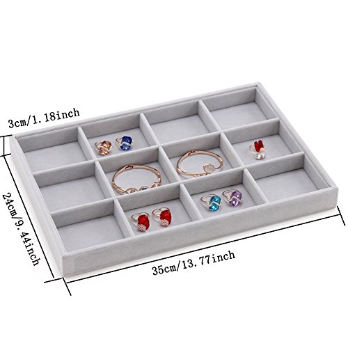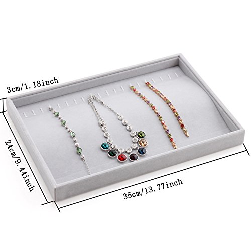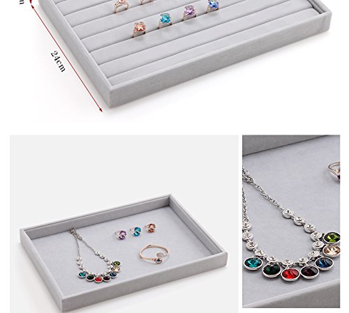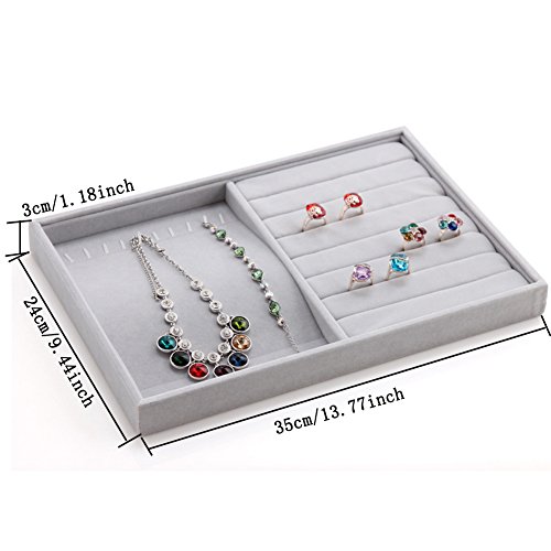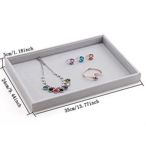 -. Binding : Kitchen -. Brand : Qise -. Color : Grey -. Feature : Length: 35cm (13.77 inch); Width: 24cm (9.44 inch); Height: 3cm (1.18 inch) / This jewelry display will add a modest touch of elegance to any room its placed it. It's also ideal for store front display cases / MAKES A GREAT GIFT - Perfect for any home that needs a convenient way to store jewelry / Crafted from beautiful black velvet that's soft to the touch and will protect your jewelry from any kind of damage or abrasion / Black velvet rack is sure to help you organize your jewelry without taking up much space -. IsAutographed : 0 -. Label : Qise -. Manufacturer : Qise -. ProductGroup : Home -. ProductTypeName : HOME -. Publisher : Qise -. Studio : Qise -. Title : Qise Multi style Necklaces Rings Bracelets and Empty Plate Jewelry Tray Display Organizer