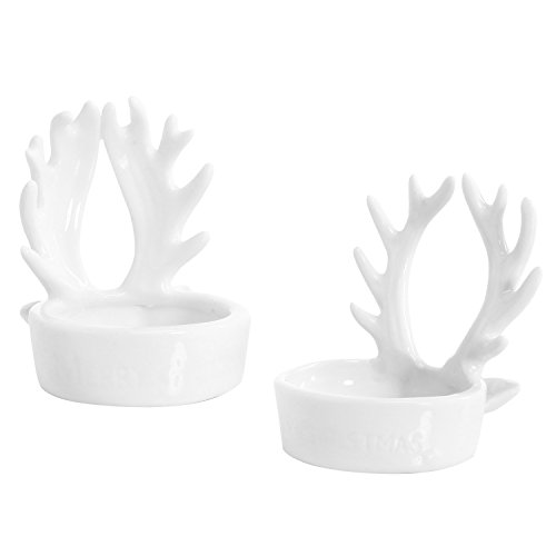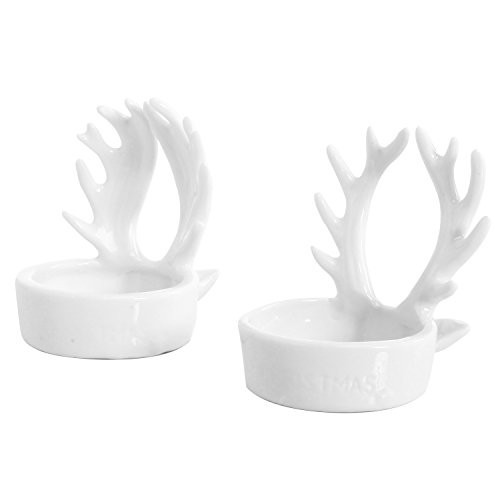 -. Binding : Kitchen -. Brand : MyGift -. Color : White -. Feature : Set of 2 deer antler candle holders with Merry Christmas written across the front / Perfect for displaying small candles during the holidays / Glossy white ceramic provides a sleek, modern style / **Official MyGift® product.** / Approximate Dimensions (in inches): 3.1 H X 2.5 W X 2.5 L -. IsAutographed : 0 -. Label : MyGift -. Manufacturer : MyGift -. MPN : TB-CAN0015WHT -. NumberOfItems : 1 -. PackageQuantity : 1 -. PartNumber : TB-CAN0015WHT -. ProductGroup : Home -. ProductTypeName : HOME -. Publisher : MyGift -. Size : Small -. Studio : MyGift -. Title : Set of 2 Ceramic Deer Antler Jewelry Ring Holder / Decorations Candle Holder , White