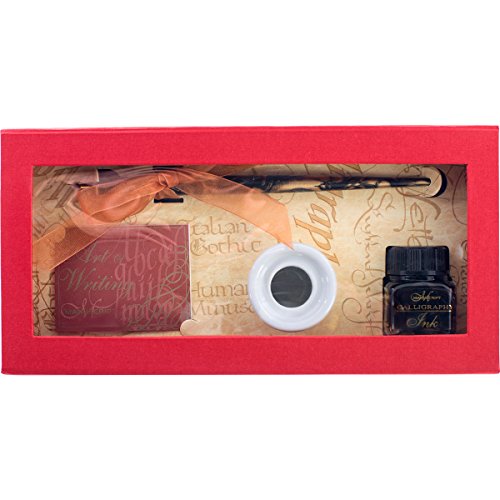 -. Feature : Keep the traditional art of writing alive / Classically styled calligraphy gift set for men and women / Set contains pen holder / round hand nib / ink well / ink and booklet / Penholder has a black and gold marbled finish / An elegant gift