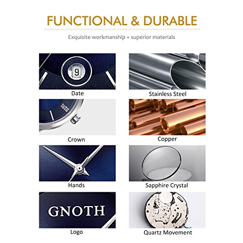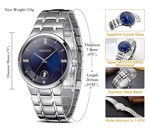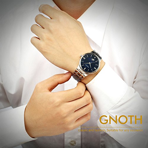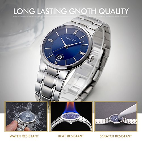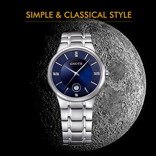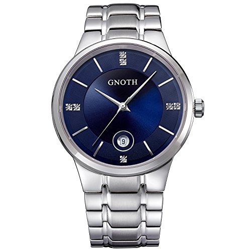 (가오 노) GNOTH 손목시계 실버 쿼츠 워치 아날로그 표시 캘린더 30m방수 스테인레스 스틸 맨즈 [병행수입품]