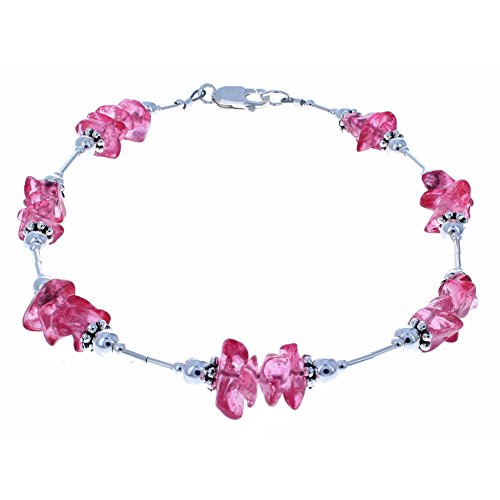 -. Title : Womens Pink Glass Chips & Sterling Silver Anklet with Daisies
