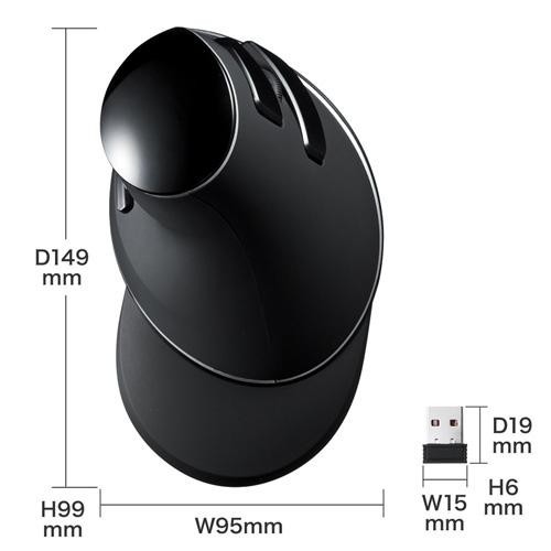 | 手首をひねらず自然な角度で握れるワイヤレスマウス。 |