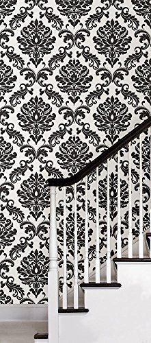 -. Title : Black Damask Peel & Stick Wallpaper Wall Decal 21 x 216in