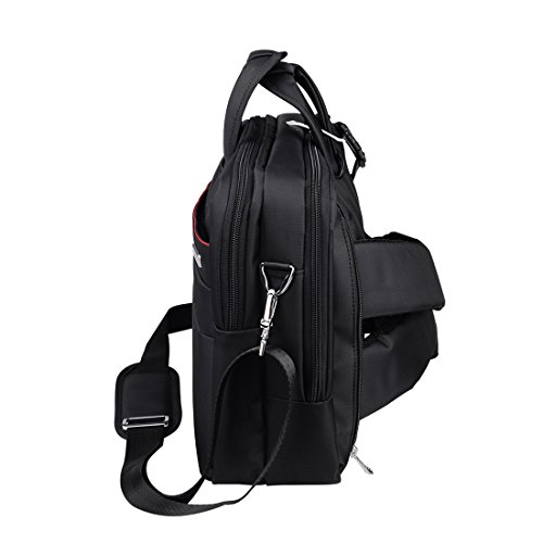 -. Feature : Material:Durable and water-resistant Nylon / Size:L11.8 in, H 18.1 in, W 6.7 in;weight:2.7 lb / Multi-Functional carry options ,3 in 1(Backpack, Messenger Bag, Briefcase) / Large capacity and multi-pocket design can hold your laptop,pens,cell phone,tablet,and so on. / Adjustable Shoulder Strap and top handle for easy carry,can be tucked away when change to other carry option