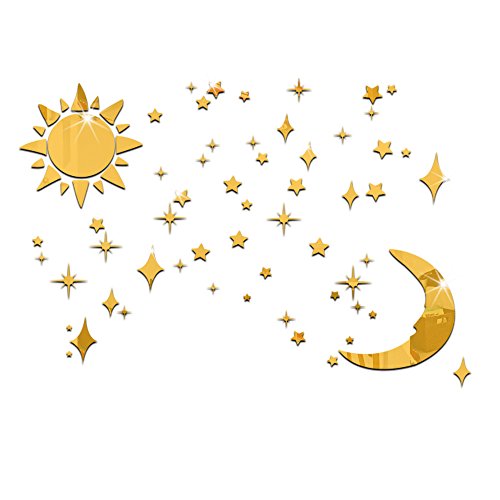 -. Title : 3D Wall Stickers Sun, Moon and Stars: 32PCS Mirror Effect Wall Stickers Decals For Children Room-gold