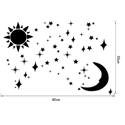 -. Feature : Material: acrylic / Plate thickness: 1mm / Color:Gold / Size : on wall size 55cm x 70cm / Package: 1 set Sun Moon Star Mirror Wall Stickers(with total 32PCS x Mirror Wall Sticker)