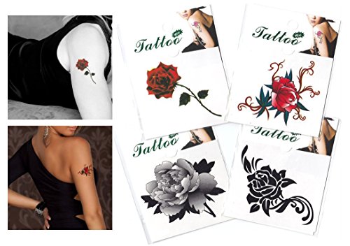 - Mix Rose/flower Temporary Tattoo / 4 Pack as shown