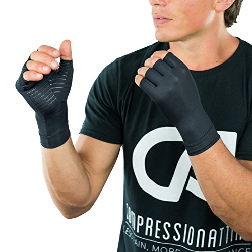 Welcome to our listing! You have taken the first step to resolve all painful issues you are having with your hands. Since you are here, we'd assume that you have some of these issues with your hands; Pain, Arthritic Disease, Carpal Tunnel, Excessive Sweating, RSI or Poor Blood Circulation. Our gloves have been designed to tackle the problems listed and more. Here's How: AMAZING ABILITIES OF COPPER! Copper has the ability to heal inflamed joints, reduce soreness and prevent painful sensations. Additionally it accelerates blood circulation plus muscle and joint healing. Copper is an effective aid with Arthritic Diseases and helps enhance oxygen use. Copper also reacts with your skin to prevent sweating which will help you keep a solid grip. It also helps during sports and gaming. COMPRESSION: Compression improves blood flow and gives great support to muscles and joints during every day tasks, sports and work outs. This results in less pain during activities and prevents fatigue after activities. GRIP: When suffering from Arthritic Diseases gripping onto items can become very difficult. We have included Rubber Grip Strips across the palms of our gloves to make gripping onto items easier. The strips also help during a variety of sports, weight lifting and gaming. FINGERLESS: Thanks to the fingerless tips, you can reap the benefits of our Gloves without having to hinder your daily activities. SCIENTIFIC PROOF OF RESULTS: Unlike brands that claim that their product "works" without any proof. We give you evidence that our product works. Beijing Sport University and Loughborough University have approved our product. Test results show high performance improvements in the range of 2.7% to 3.3%. Simply put, it means that our gloves will give you results! BUY TODAY TO FREE YOUR HANDS! 0 |