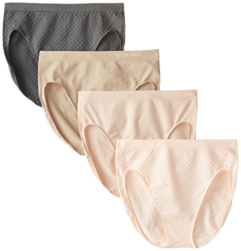 Ellen Tracy Women's 4 Pack Jacquard Dot Hi Cut Panty, Peach/Latte/Charcoal/Sun Beige, Small