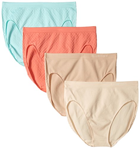 Ellen Tracy Women's 4 Pack Jacquard Dot Hi Cut Panty, Seaspray/Black/Blossom/Sun Beige, Large