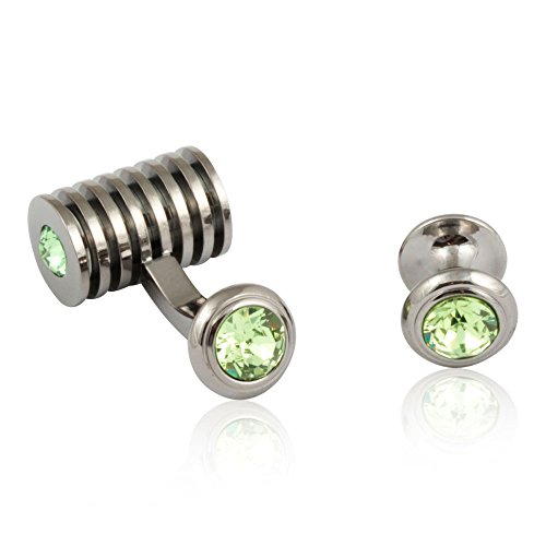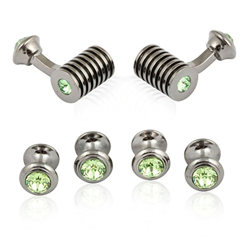 Studio : Cuff-Daddy Publisher : Cuff-Daddy Binding : Jewelry Product Description In case you haven't noticed, we love a good gunmetal finish here at Cuff-Daddy, especially when it comes to formal sets of cufflinks and studs. That is why we are proud to share this exclusive design with you. These ribbed barrel cufflinks and studs feature CRYSTALLIZEDO Swarovski Elements. In particular, these feature green Peridot crystal and look fantastic with the contrasting gunmetal setting. We carry this design in many other colors and finishes. Arrives in a quality presentation box. 0