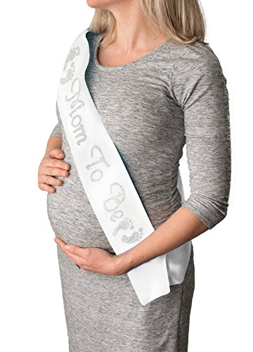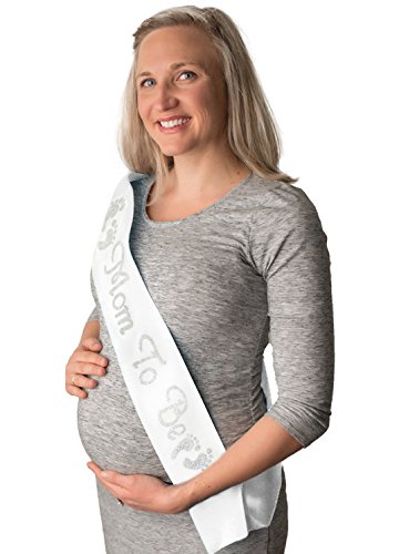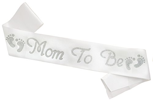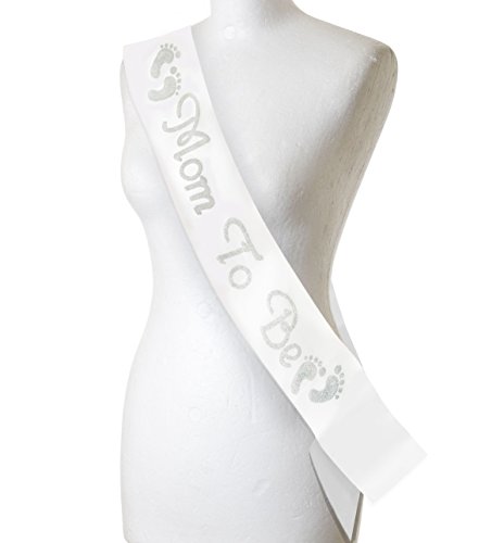 Mom to be Sash - Soft, White Satin with Silver Glitter - Baby Shower Sash for Mom - Baby Boy or Girl - Neutral - Best Baby Shower Gift or Baby Shower...