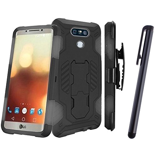 -. Title : LG G6 H870 Case, Fincibo (TM) Hybrid SuperCoil Stand With Holster Dual Layer Hard Silicone Skin Protector Cover, Black/ Grey + Stylus Pen