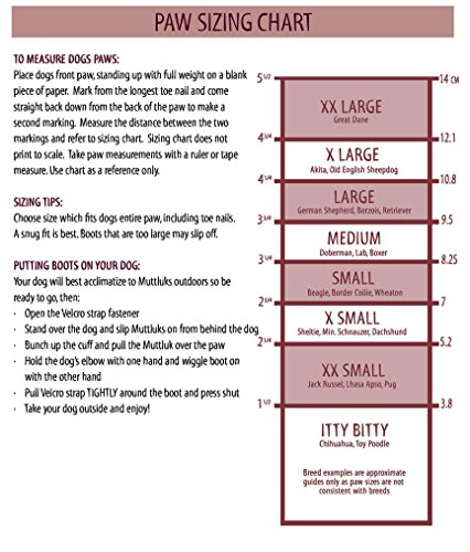 Studio : A.C. Kerman - Pet Products Publisher : A.C. Kerman - Pet Products Binding : Misc. Product Description Proudly designed and made in Canada since 1994, Mutt Luks are not just fancy footwear for canines. They provide superior performance and "Pawsitive Relief" for your canine companion. All Weather Mutt Luks provide protection for hot or cold climate conditions. Protects paws from hot pavement, hot sand, burrs, ice, snow or salt. 0