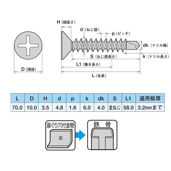 ●座ぐり穴付金物+鉄骨用ドリルビス