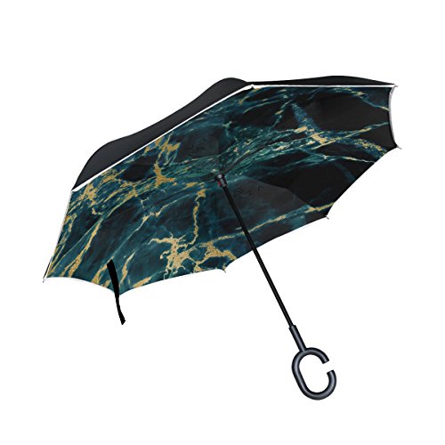 (AHOMY)/Accessories/Umbrellas/DIRECT FROM USA/AHOMY Marble Pattern Large Double Layer Inverted Umbrella Windproof UV Protection With C-Shaped...