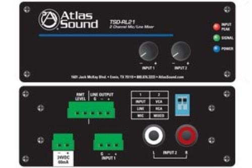 Studio : Capitol Sales Company Publisher : Capitol Sales Company Product Description Selectable balanced mic or line input. RCA actively summed input. 50 dB high gain mic input. Balanced line out. Input peak and signal indicator LEDs. Remote level control assignable to the mixed signal or to a BGM source. High gain output for driving long balanced lines. Removable phoenix style I/O connectors. Separate ground connections. Multiple mounting configurations. Made in China. 4 in. W x 2.75 in. D x 1.5 in. H. 0