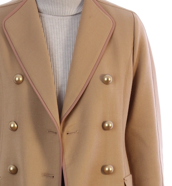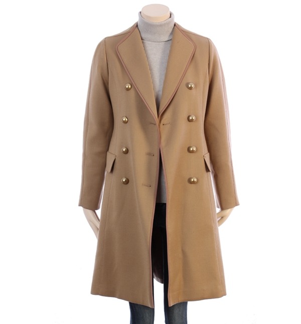 SATIN, 군더더기없이 심플한 디자인으로 차분하여 포멀한 분위기를 연출하는 더블버튼 모직 코트입니다