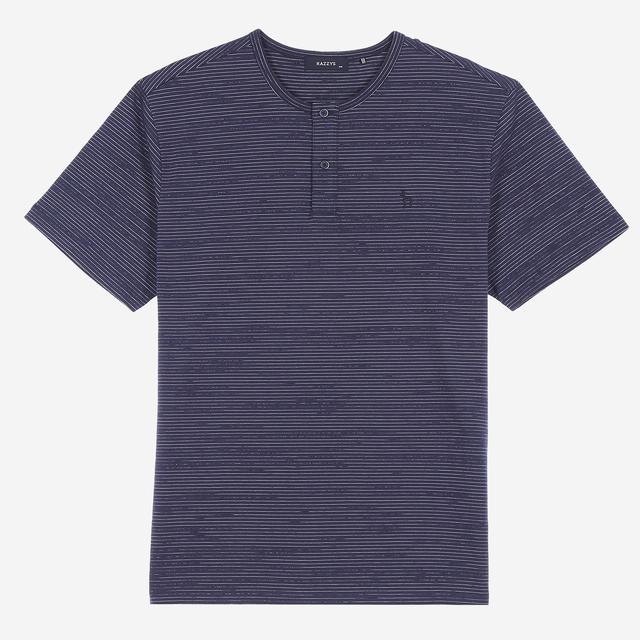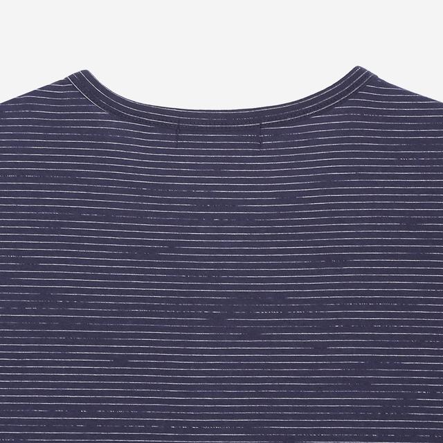 캐주얼한 스트라이프 패턴에 베이직한 디자인으로 다양한 하의와 스타일링하기 무난한 반팔 티셔츠입니다.