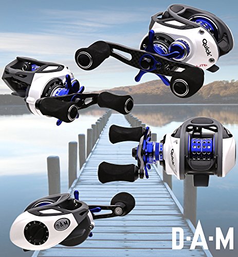 Studio : DAM Publisher : DAM Binding : Misc. Product Description DAM Quick D-Lite Baitcast - Baitcast reel - Lightweight and a delight to fish with: the new, left-hand Quick D-lite baitcast reel. Specially designed for the latest trend: finesse fishing. By using lightweight parts, such as a carbon handle and carbon side covers we managed to build an aluminium frame, 10 ball bearing baitcast reel that weighs less than 180 gram. With its gear ratio of 7,0:1 it is also extremely high speed. Casts also like a dream, due to the use of Japanese ball bearings. This is our most advanced and sophisticated baitcast reel. TECHNICAL HIGHLIGHTS: 9 sealed stainless steel ball bearings 1 instant anti-reverse needle bearing Double anodized aluminium spool Aluminium frame and carbon side plates Aluminium main shaft Brass Wormshaft oscillation gear Aluminium star drag Micro-adjustable, centrifugal magnetic drag Thumb bar line release button Lightweight carbon handle with EVA knobs Drag force: 12 Lb 0